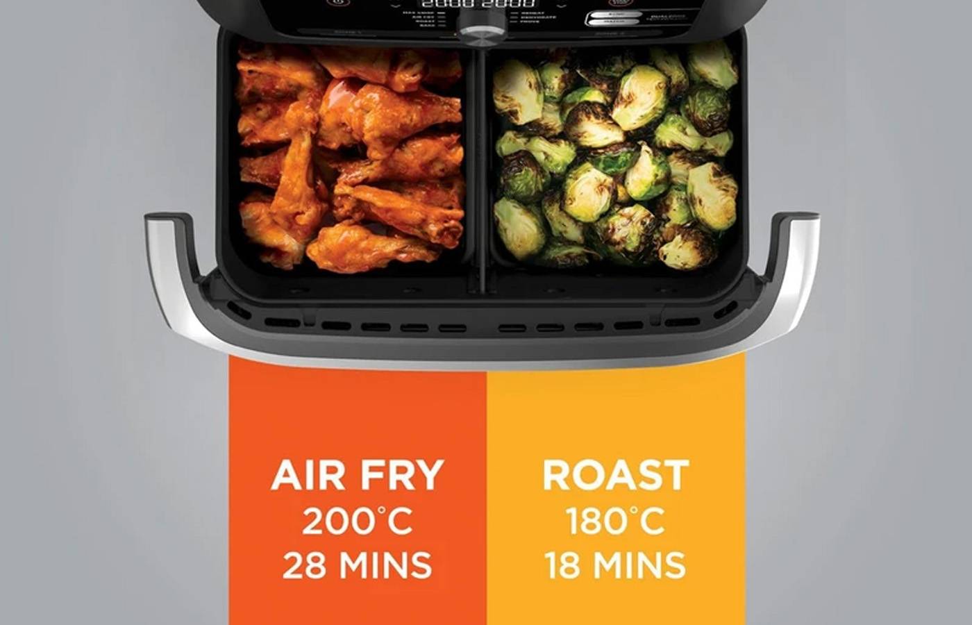 شما میتوانید دو نوع مادهی غذایی مختلف را به صورت همزمان و با تنظیمات دما و زمان متفاوت در دو سبد مجزا بپزید، یا با برداشتن تقسیمکنندهی میانی، از تمام فضای ۱۰.۴ لیتری برای پخت غذاهای حجیم مانند یک مرغ کامل یا یک ظرف بزرگ سیبزمینی استفاده کنید. پنل کنترل دیجیتال با دکمههای لمسی و نمایشگر LED، علاوه بر زیبایی، دسترسی آسان و دقیقی به تنظیمات دما، زمان و انتخاب از میان ۷ برنامهی پخت پیشفرض را فراهم میکند.